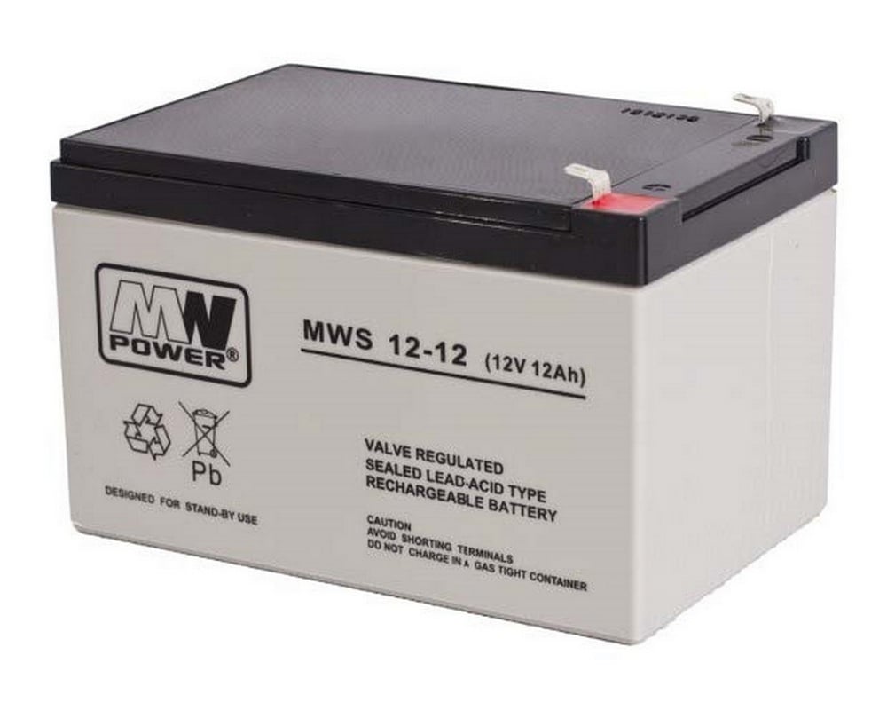 Acumulator 12V, 12Ah, fara intretinere, MW Power, MWS 12-12Bateriile cu plumb din seria MWS de la MW Power se caracterizeaza prin raportul optim pret/performanta. Acestea au fost concepute pentru o gama larga de aplicatii si sunt utilizate, de exemplu, in surse de alimentare, panouri de control, sisteme de supraveghere si in automatizari. Ele pot fi folosite si ca surse de alimentare in dispozitivele portabile.