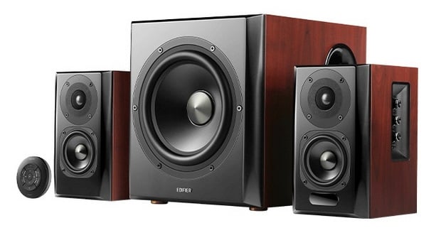 Cum comanzi Boxe 150W RMS, 8inch, Edifier S350DB, AUX, Bluetooth, COX, OPT, PC, telecomanda, carcasa lemn?