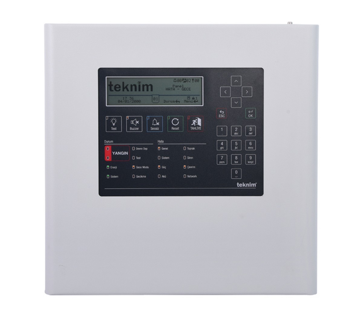 Centrala de detectie incendiu adresabila certificata EN 54-2 si EN 54-4, poate inregistra 508 de dispozitive in 74 de zone individuale, astfel cu acest dispozitiv veti putea identifica exact unde se afla incendiul. Distanta de comunicareSenzorii de fum vor putea comunica la o distanta de pana la 2500 de metri, atunci cand se foloseste cablul cu sectiune de cel putin 2 mm². Centrala poate stoca in memorie pana la 12.000 de alarme, erori sau avertismente. Ecran LCD incorporatAceasta dispune de un ecran LCD ce permite vizualizarea mai rapida a avertismentelor, ecranul poate fi configurat sa apara logo-ul companiei, imagini, informatii de contact, etc. Configurarea este una rapida, iar acest lucru se poate face direct de pe panou sau daca doriti puteti utiliza un calculator.Extinderea reteleiSe poate crea o retea de pana la 8.128 de dispozitive adresabile si 1.152 de zone, folosind o arhitectura de retea care conecteaza 16 panouri prin protocolul TD Net cu ajutorul modulului optional TFC-1208. Alimentarea centralei direct prin cablu sau bateriiAlimentarea se face la 230 / 110 VAC prin cablu, iar ca mod de backup se pot folosi baterii 2 x 12V 7A. Centrala are integrata o sursa de 24 VDC care va alimenta senzorii conventionali. Aceasta dispune de 2 iesiri de sirena 500mA care accepta conexiunea maxima de 50 de sirene Teknim.