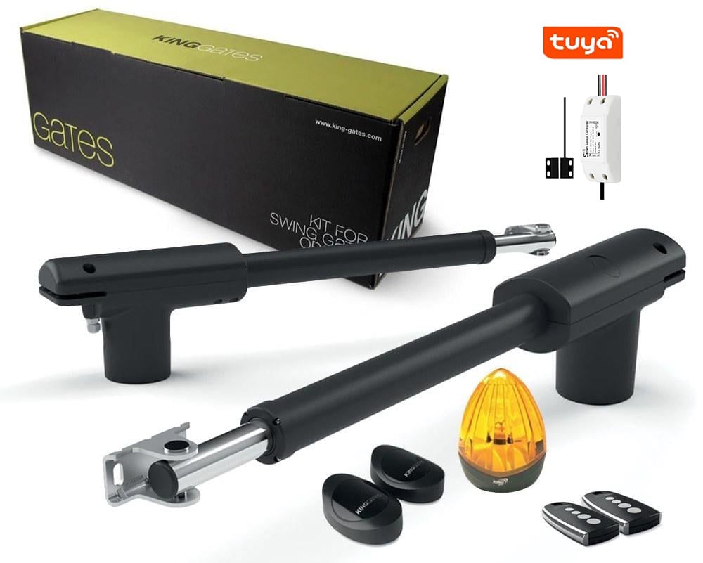 Automatizare pentru porti batante de pana la 2x4.5 metri, trafic intens KING GATES LINEARK50024Pachetul include: Cutie cu placa de baza STARG82 brate telescopice Lampa de semnalizare cu antena incorporata1 Set de fotocelule 2 Telecomenzi1 releu wirelessAutomatizare fiabila pentru un trafic intensAutomatizarea LINEAR 500 vine cu 2 brate cu piston telescopic (mecanic), fabricate din aluminiu turnat si cadru de otel inoxidabil. Suportii de prindere a bratelor nu necesita sudura datorita capatului care poate fi prins de poarta cu ajutorul unor suruburi. Cablarea ei se face foarte usor datorita unor cleme de legatura. Carcasa are un factor de protectie IP 54, care permite utilizarea portii la temperaturi cuprinse intre -20° - +50°. Motorul este unul silentios, care permite o deschidere de 0.014 metri/ secunda cand foaia este la greutate maxima (300 de kg). Calitatea folosita la piesele facute de KING GATES iti spun mai mult decat un lucru: Miscare silentioasa, performanta maxima, uzura minima, instalare usoara. Placa de control inteligentaMunca instalatorului este simplificata radical datorita unei placi de baza inteligenta . Aceasta garanteaza performanta la nivel inalt in ceea ce priveste siguranta utilizatorilor, timpul si viteza de instalare. O singura metoda de programare si pentru automatizari batante si pentru automatizari culisante. Astfel instalatorul nu trebuie sa invete doua tipuri de placi de baza. Aceasta ajuta la o programare rapida si la o mentenanta simpla si practica.Se regleaza practic folosind un variator de putere, cursa portilor se poate programa automat cu ajutorul unei singure telecomenzi. Vine echipata cu leduri de diagnosticare si comutatoare DIP pentru setarea modurilor de functionare. Suporta gestionarea operatiunilor de reducere a vitezei, de reglare a vitezei si forta la detectie obstacol. Placa de control poate fi programata direct din telefon printr-o aplicatie intuitiva. Pentru aceasta trebuie sa achizitionati modulul wireless KINGCONNECT (Vezi produse asociate), sau poti sa o controlezi din aplicatia CLAVIS daca instalezi modulul suplimentar WI-CLAVIS, pentru a putea controla automatizarea deschis/ inchis. (Atentie - produsele specificate mai sus nu sunt incluse in acest KIT). De asemenea, automatizarea poate fi controlata si cu releul Wifi RH-GD02.Inainte de a alege automatizarea, verificati dimensiunile stalpilor portii, pentru a vedea daca se potriveste pe poarta dumneavoastra. Va rugam alegeti automatizarea in functie de greutatea si lungimea portii dumneavoastra, conform graficului de mai jos. Cumparati o automatizare mai puternica daca sunteti la limita de greutate, dimensiune, sau daca aveti poarta acoperita cu materiale care obstructioneaza circulatia aerului. Releu wireless, ce permite controlul oricarei automatizari de poarta direct de pe telefon, prin aplicatia smart home TUYA. Aplicatia Tuya va permite integrarea cu o gama larga de produse din domeniul home comfort si securitate, precum senzori de fum, sisteme de alarma, electrocasnice, electrovalve, camere de supraveghere si altele. Aceste produse se pot conecta ulterior cu HUB-uri Alexa, Google Smart, permitandu-va comenzi vocale. Astfel, puteti controla intreaga casa inteligenta dintr-o singura aplicatie.Pentru functionare corecta, trebuie sa inrolati dispozitivul pe routerul wireless si sa va asigurati ca aveti semnal suficient in zona unde va functiona releul.Releul va permite controlul de la distanta al usii de garaj sau portii, iar starea acesteia poate fi verificata in orice moment si de oriunde din lume prin aplicatia Tuya pe dispozitivele Android/iOS.Dispune de control vocal pentru Amazon Alexa si Google Home IFTTT, partajare dispozitiv si posibilitatea de a seta temporizatoare pentru pornirea/oprirea automata, astfel incat sa va ajute sa aveti o casa si mai inteligenta.GHID CONEXIUNI: Automatizari de porti LIFE: Toate placile Bornele 6 si 10 Automatizari de porti LinomatikLINO400/600 : Bornele: 3 si 5SLIDE 6N/8N: Bornele: circular button si comSLIDE6/8 EVO: Bornele: start si comunAutomatizari de porti King Gates:STARG8_24_RO: 15 si 16STARG8 AC 230V : 15 si 16Automatizari de porti COMUNELLO PP si GNDAlte automatizari de porti Cititi manualul producatorului@media only screen and (max-width: 768px) {.tabcontent-description table td {display: contents!important;}} __@media only screen and (max-width: 768px) {.tabcontent-description table td {display: contents!important;}}