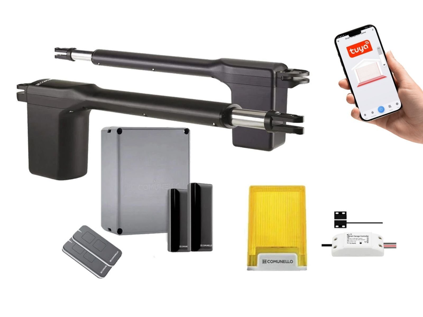 Kit automatizare porti batante Comunello RAM 300 24V, 2x3m, 2x400kg, cu releu wireless, aplicatie Tuya, RAM30024RHGD03. Fiabilitate si performanță