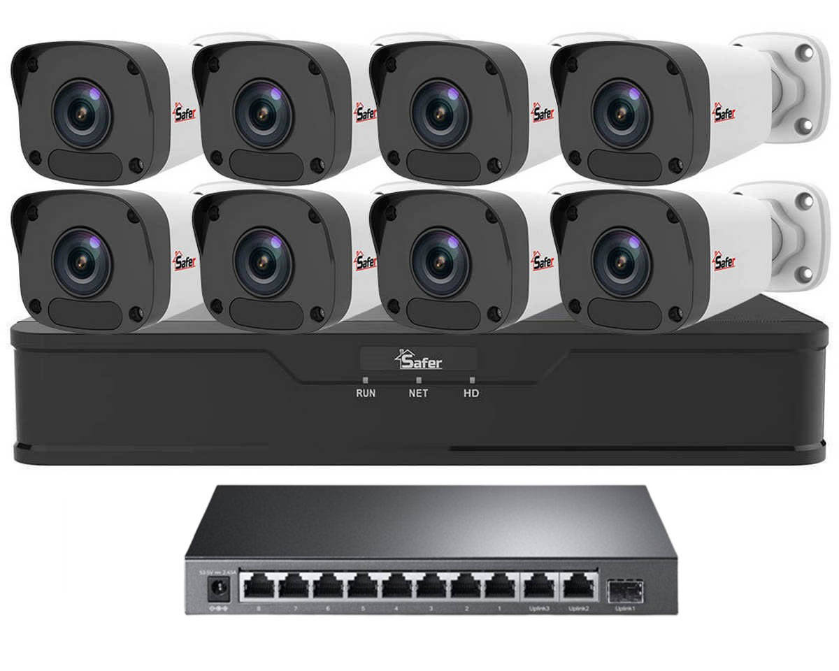 Kit de supraveghere video IP de exterior, 8 camere 4 MP, IR 30 m, NVR 8 canale, Safer, KITIP-8X-4MP420POE. Fiabilitate si performanță