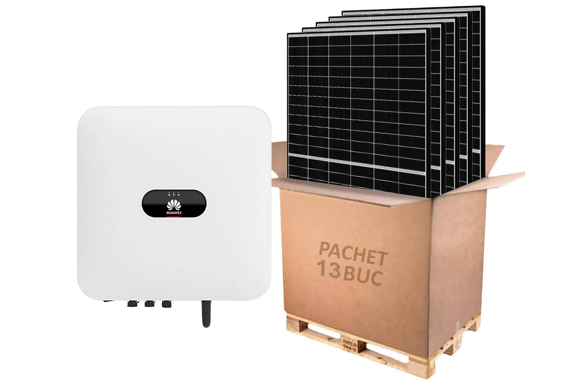 .pHighlight { display: block; background-color: #ffeff0; color: black; font-weight: bold; box-sizing: border-box; border-radius: 5px; padding: 5px;Conform legii 216 din 10 iulie 2023 persoanele JURIDICE pot achizitiona produse fotovoltaice cu TVA 9% daca revand aceste produse la persoane fizice, dupa ce completeaza o declaratie pe propria raspundere. Declaratia pentru persoane jurdice o gasiti AICI.Persoanele FIZICE care achizitioneaza panouri pentru alte destinatii decat locuinta trebuie sa completeze o declaratie pe propria raspundere, pe care o gasiti AICI.Kit-ul este compus din: 1x Invertor monofazat SUN2000-6KTL-L113x Panouri fotovoltaice CS6.2-48TD-455-BFAtentie! Pentru a beneficia de garantia extinsa trebuie sa pastrati factura si certificatul de garantie emis de catre producator.InvertorInvertorul Solar Huawei Hibrid SUN2000-6KTL-L1 permite captarea curentului electric produs de catre panourile solare si transformarea acestuia in curent pentru: Utilizarea de catre electrocasniceIncarcarea bateriilor - Atentie este compatibil doar cu bateriile LUNA2000-5/10/15-S0, LUNA2000-7/14/21-S1Modul Wi-Fi inclus in pachetAplicatia mobila Huawei Solar va permite sa vizualizati starea si sa gestionati sistemul solar de oriunde in lume.Pachetul in care se livreaza invertorul include modului wifi. Invertorul solar Huawei SUN2000-6KTL-L1 vine cu o serie de protectii electrice precum: Protectie la scurtcircuit, anti isulare si izolare deficitara, monitorizare izolare protectie scurgere DC si AC TYPE II conform 64643.11 protectie la curent Rezidual protectie la supra-curent si supra-voltaj protectie la supra-incalzire, protectie pentru polaritate inversata la baterii si PV. Pentru a putea stoca curentul in baterii aveti nevoie de un BMS precum LUNA2000-5KW-C0 si de un acumulator precum LUNA2000-5-S0-1. Panou fotovoltaicDescoperiti performanta si fiabilitatea oferite de panoul fotovoltaic Canadian Solar CS6.2-48TD-455-BF, un modul monofacial de ultima generatie, fabricat de un producator recunoscut la nivel mondial. Echipat cu celule de tip N, panoul atinge o eficienta de conversie de 22,8%, contribuind la o productie energetica superioara si la reducerea impactului asupra mediului. Tehnologia TOPCon si configuratia cu 144 de celule il recomanda pentru aplicatii unde randamentul ridicat este esential.Construit pentru a rezista in conditii climatice dificile, panoul suporta incarcare la zapada de pana la 6000 Pa si vanturi de pana la 4000 Pa. Structura durabila sticla–sticla asigura o functionare stabila si de lunga durata, sustinuta de o garantie de produs de 25 de ani si o garantie de performanta de 87,4% dupa 30 de ani.Compatibil cu o tensiune maxima a sistemului de 1500 V, panoul permite conectarea usoara prin conectori standardizati precum T6, MC4-EVO2 si MC4-EVO2A, oferind astfel o instalare flexibila si eficienta in diverse tipuri de sisteme solare.Acest produs este agabaritic si se livreaza pe un palet special, de aceea se percepe o taxa speciala de transport. Costul transportului este de fix 300 lei. Livrarea se face pe palet profesional, oriunde in Romania.Panourile sunt predate curierului Gebrüder Weiss in maxim 24 de ore. Livrarea se face in functie de disponibilitatea transportatorului, in 3-5 zile. Acest curier NU ACCEPTA Plata la livrare. Puteti plati doar cu cardul sau prin banca. Daca nu acceptati marfa, se retine taxa de transport (300 Lei)