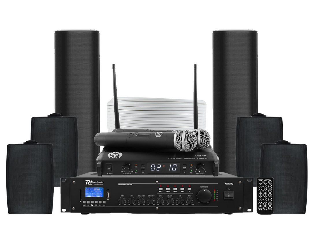 Kitul include un amplificator performant, patru boxe, două difuzoare și un sistem de microfoane wireless, toate concepute pentru a oferi o experiență audio de calitate. Amplificatorul PRM240 este dotat cu tehnologie modernă, inclusiv conectivitate Bluetooth și porturi USB/SD pentru redarea fișierelor MP3.