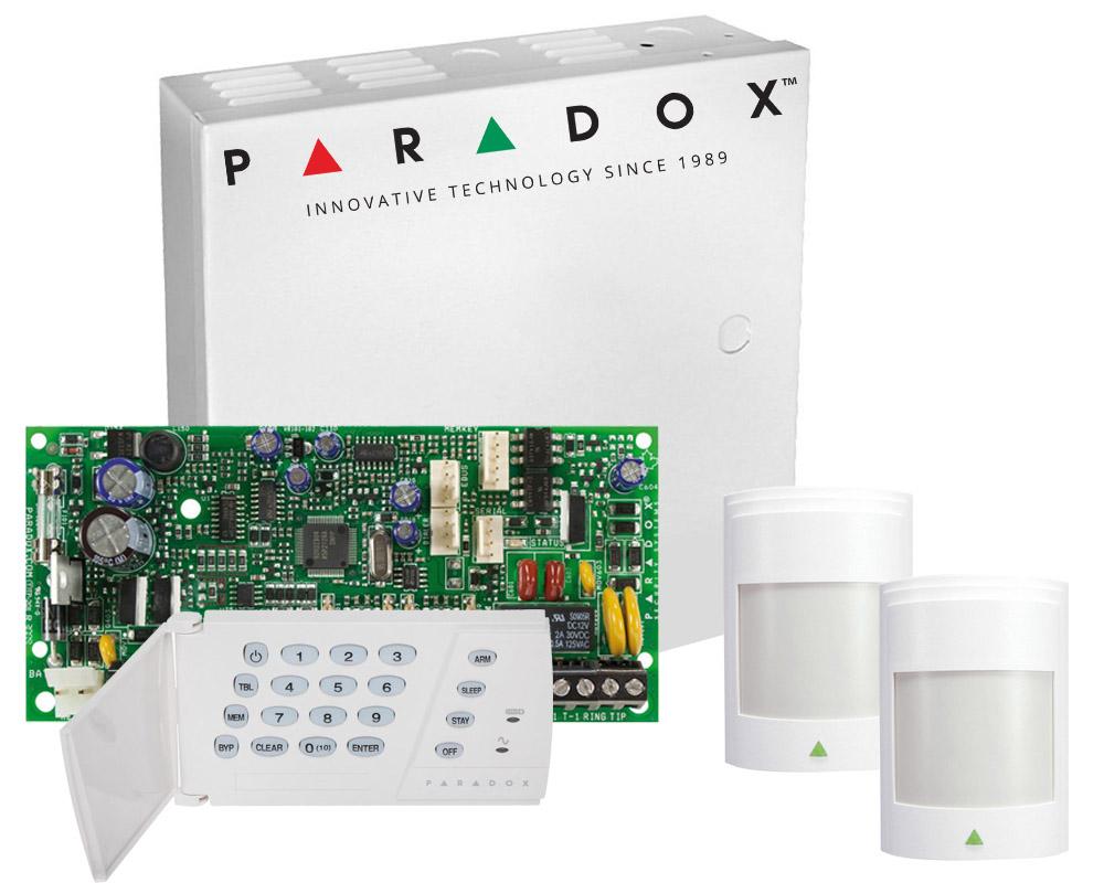 Sistem de alarma 2 zone Paradox SP4000 cu tastatura LED si 2 detectori PIR. Fiabilitate si performanță