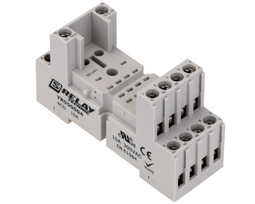Soclu pentru relee RS/PT5, 24V, terminale cu surub, 14 poli, 10A, Schrack, YRS50004. Fiabilitate si performanță