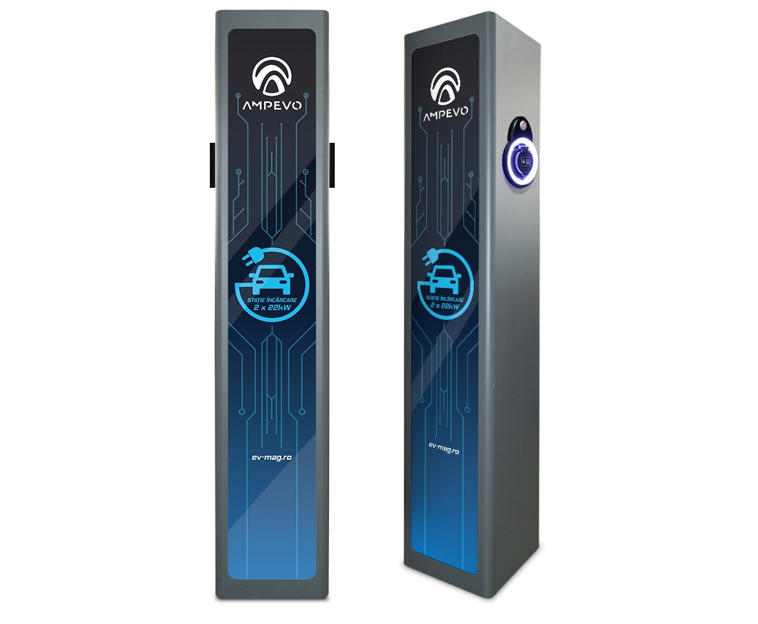 Statia de incarcare trifazica pentru masini electrice Ampevo AMP344T2GO prezinta o putere de 22kW la un singur port. Astfel, puterea totala pentru cele 2 porturi ajunge la 44kW. Acest dispozitiv se incarca la 64A cu ajutorul unui blocator de mufa, care actioneaza in momentul incarcarii.Pachetul nu contine cablu de alimentare.Statia este destinata spatiilor comerciale si zonelor rezidentiale, alaturi de liniile de business de tip office si nu numai. Aceasta poate dispune de un sistem de conectare de tip outlet sau cablu (conform alegerii clientului).Sistemul Smart Autonom Comercial permite gestionarea unui numar nelimitat de statii de incarcare in regim autonom, adica fara a se conecta la Internet sau la un server central.Interfata permite doua tipuri de utilizatori: administrator unic si operator. Utilizatorul de sistem se conecteaza prin browser la adresa interfetei si se logheaza prin introducerea numelui de utilizator si a parolei. Dupa logare, el va avea acces la 4 functionalitati: dashboard, setari, utilizatori, lista sesiuni.Statia este echipata cu LED, care indica activitatea de incarcare printr-un limbaj de culori. Astfel, atunci cand statia se afla in modul ONLINE de functionare, semnalele luminoase transmit urmatoarele informatii specifice, conform culorilor activate (led alb - status de statie functionala, albastru - modul EV-Present, cand cablul de incarcare este conectat la vehiculul electric, verde - modul incarcare, rosu - modul nefunctional).Statia este dotata cu protectie diferentiala impotriva socurilor mecanice si a intemperiilor. Carcasa ei este proiectata din otel la 2mm, fiind cotata cu gradul de protectie IP55 si IK10. In acest fel, statia se poate monta atat in interior cat si in exterior.