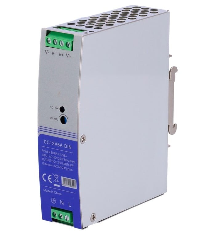 Sursa de alimentare in comutatie, 12V 6.3A, montaj pe sina DIN, Safer SAF-12V-6A. Fiabilitate si performanță