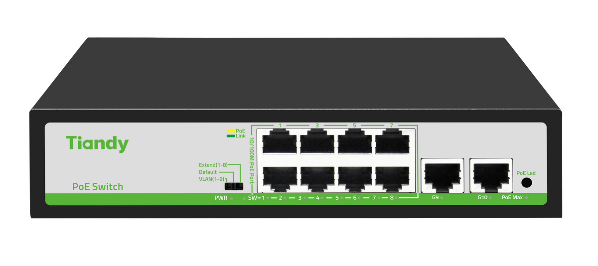 De ce să alegi produsul Switch PoE Tiandy TC-P3S010-H0820AT90, 8 porturi PoE, 2 porturi RJ45, 90W, 5.6Gbps, protectie supratensiune?