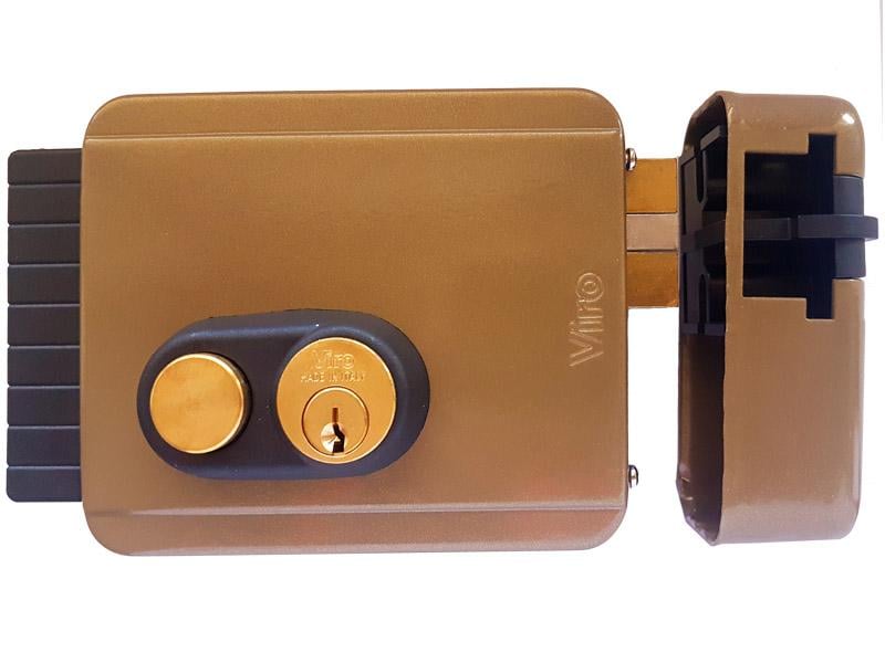 Yala aplicata dreapta VIRO (Italia), pentru exterior, cu buton, 12V. Este o yala aplicata cu buton de iesire. Se monteaza pe partea dreapta.Pachet cu butuc si 3 chei incluse. Buton de deblocare pe interior manual. Pachetul contine contra/placa si alimentarea se face la 12V CC. Consumul este de cca 1 AH.Instalare: orizontalPlaca : adjustabila de la 50 la 80 mmVoltaj: standard 12V ACCarcasa: turnata din otel si vopsitaMâner: nylon si piulita cilindru nylon / apasare inel butonZavor: alama masiva, autoblocantEjector: otel nichelat, incorporata in dispozitivul de blocareButon de apasare: alamaCilindri: alama masivaChei: include 3 chei de nickel
